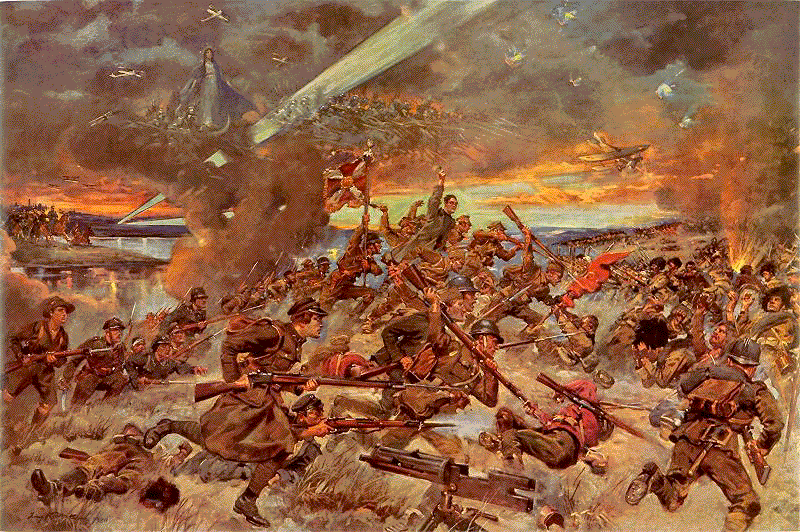 Wróg trajkocze piekielnym grzechotem kulomiotów i błyska stalą bagnetów,