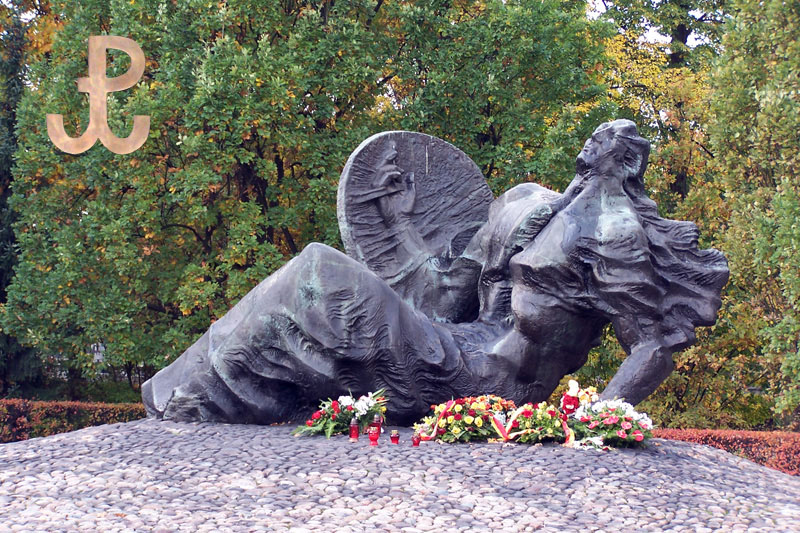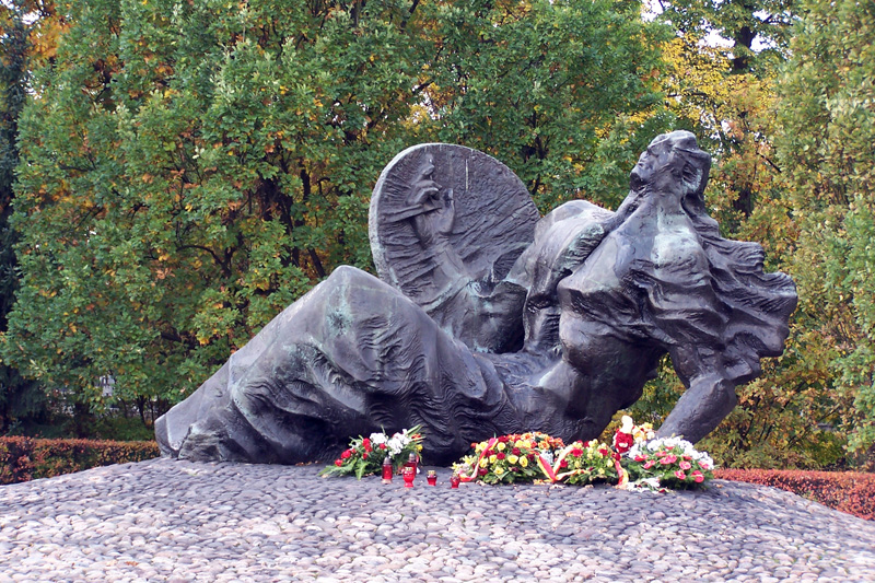 Pomnik „Polegli – Niepokonani” Gustawa Zemły na Cmentarzu Powstańców na Woli przy ul. Wolskiej/Sowińskiego. Kurhan pod pomnikiem kryje prochy 40-50 tys. mieszkańców Woli zamordowanych w pierwszych dniach powstania.