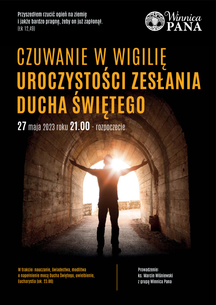 27 maja 2023 roku o godz. 21:00 Winnica Pana zaprasza na Czuwanie przed Zesłaniem Ducha Świętego