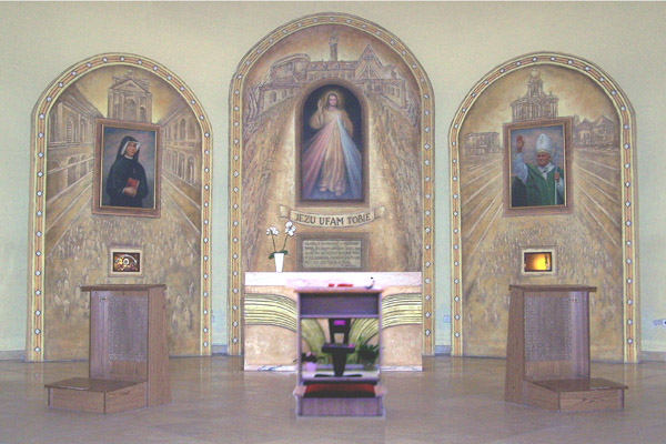 Po lewej stronie nawy znajduje się kaplica Miłosierdzia Bożego z umieszczoną w niej kopią obrazu Chrystusa Miłosiernego w środkowej części tryptyku.