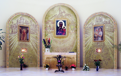 W obu bocznych częściach tryptyku znajdują się relikwiarze bł. Władysława z Gielniowa i św. Joanny Beretty Molli.
