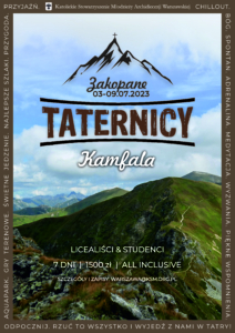 3. Zapraszamy na Taterników Kamfala – obóz dla licealistów i studentów w dniach: 03-09 lipca. W programie m.in. Czerwone Wierchy, Zawrat, spływ Dunajcem, termy Chochołów, Eucharystia na szlakach. Szczegóły u ks. Kamila, zapisy do końca maja.