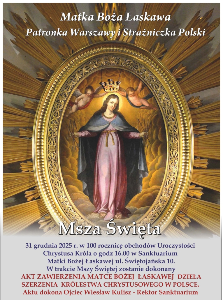 Niech to słowo pomoże nam w czasach zamętu powszechnego podejmować wszelkie godziwe działania i inicjatywy mające na celu rozszerzenie Chrystusowego królowania na polskiej ziemi i na całym świecie.