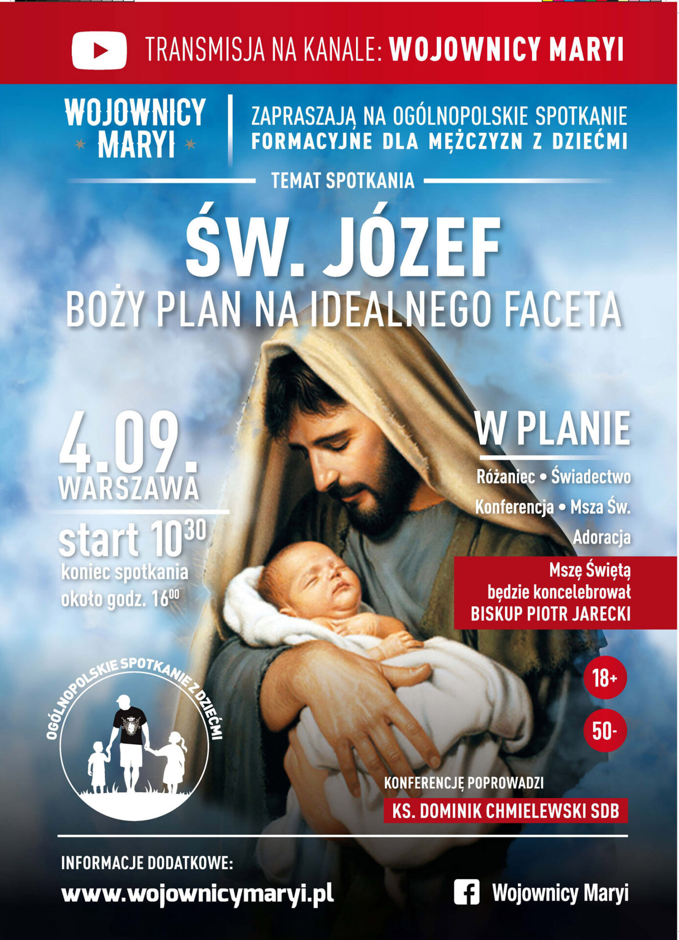 W sobotę 4 września o godz. 10:30 w naszym kościele odbędzie się po raz drugi ogólnopolskie spotkanie męskiej wspólnoty Wojowników Maryi. Spotkanie poprowadzi opiekun grupy ks Dominik Chmielewski, a Eucharystii będzie przewodniczył bp Piotr Jarecki. Serdecznie zapraszamy wszystkich mężczyzn.